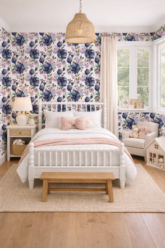 Indy Bloom specializes in premium hand-painted floral wallpaper designed to bring a whimsical, feminine touch to nurseries, kids' rooms, and stylish home spaces.
