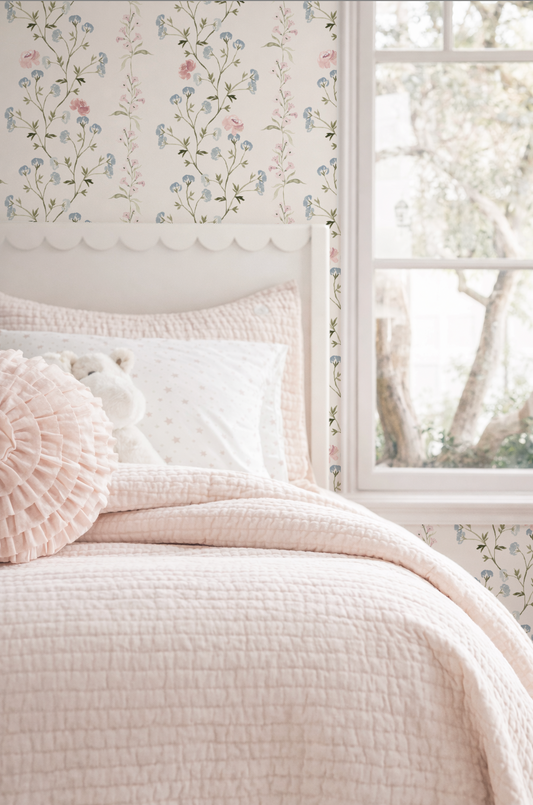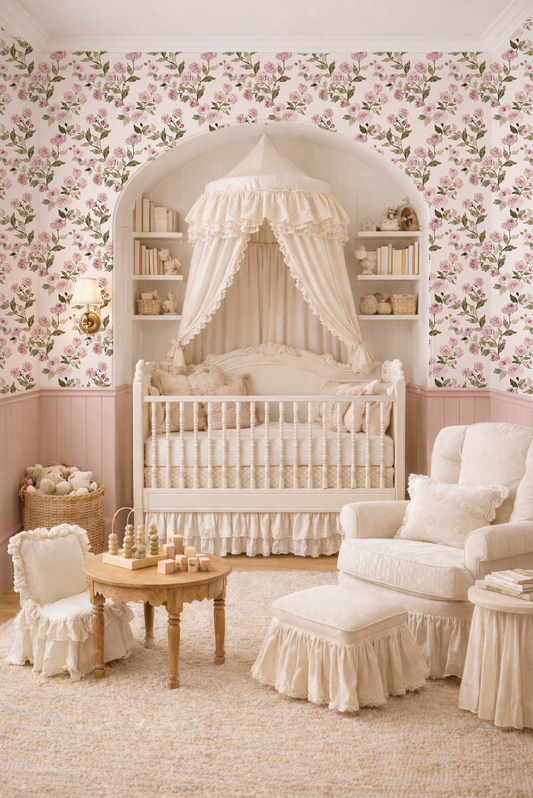 Indy Bloom specializes in premium hand-painted floral wallpaper designed to bring a whimsical, feminine touch to nurseries, kids' rooms, and stylish home spaces.