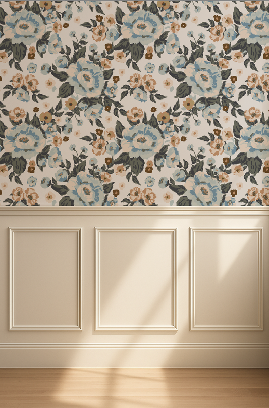 Vintage Cottage Blue Rose- Indy Bloom Wallpaper