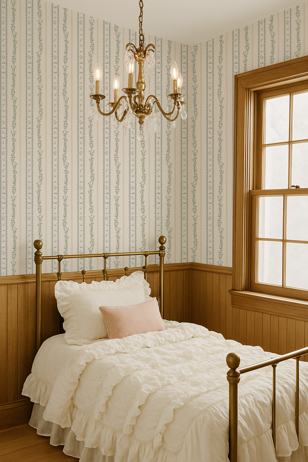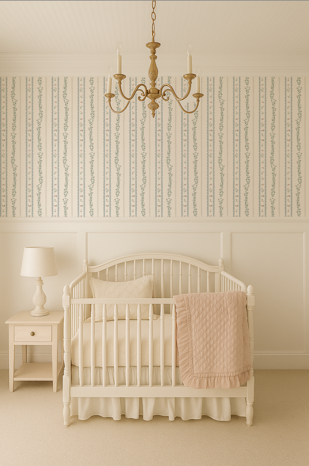 Turn your little girl’s room into a vintage dream, wallpaper designed to feel like you have traveld back in time. Soft muted pinks, muted blue, sage muted green, on an off white background. Add whimsy and charm to any nursery, playroom, bathroom, or bedroom or any room for yourself! This is our smaller scale. Larger scale is also available in our shop.