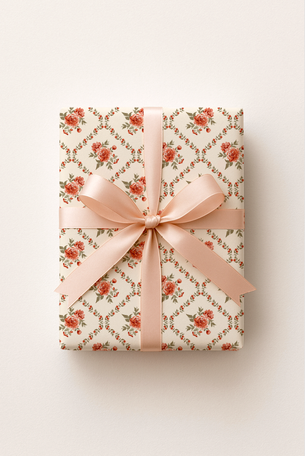 Wrap your gifts in timeless elegance with our boutique floral wrapping paper. Featuring soft sage green roses on a creamy background, this design feels both romantic and refined. Printed on semi-gloss paper, each 19-inch roll is perfectly sized for elevated holiday wrapping. A sophisticated choice for those who believe presentation is part of the gift.