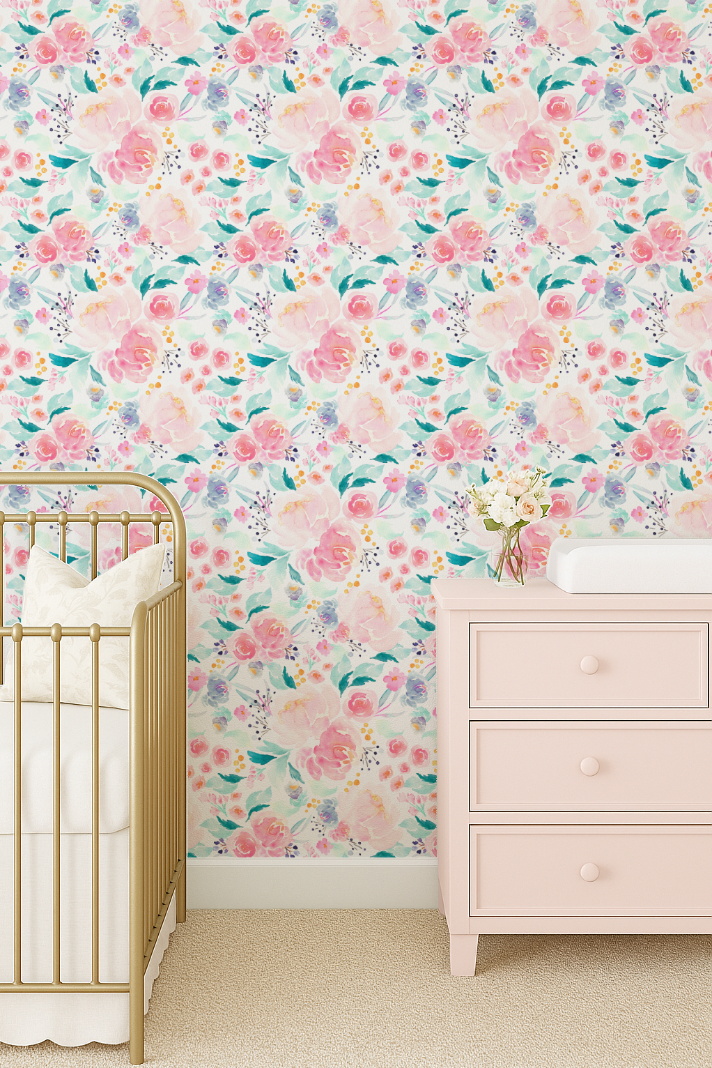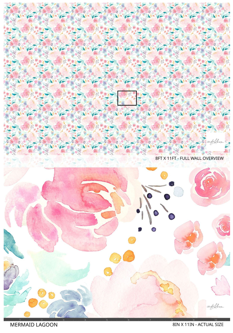 Turn your little girl’s room into a beachy boho vibe with Mermaid Lagoon, our hand-painted watercolor wallpaper designed to feel like a custom mural—without the cost of hiring an artist. Soft pinks, gentle purples, teal blue and greens, on a white background. Add whimsy, and charm to any nursery, playroom, bathroom, or bedroom.